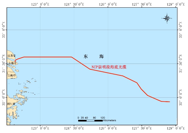 新跨太平洋海缆系统(NCP)网络结构为鱼骨状单支形结构,海缆网络总长度约为14000km,海缆将在上海崇明、上海南汇、韩国、日本、台湾等地区登陆。NCP南汇段工程在上海南汇临港新城登陆后自登陆点向东敷设,通过海底分支点BU1连接NCP主干光缆。